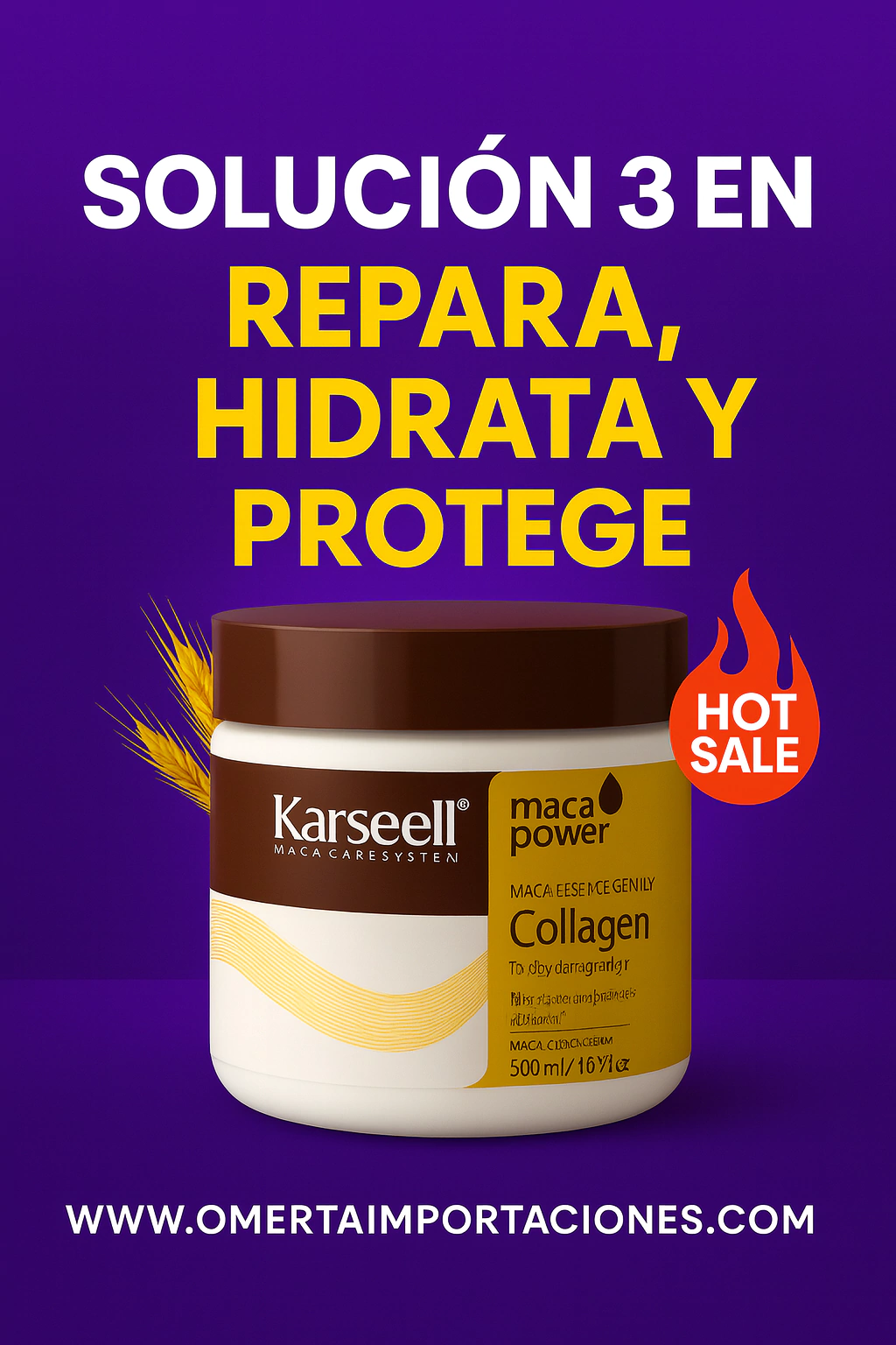 ¿Cabello seco, dañado o con frizz? La Mascarilla Karseell es tu solución 3 en 1 para reparar, hidratar y proteger tu cabello desde la primera aplicación.